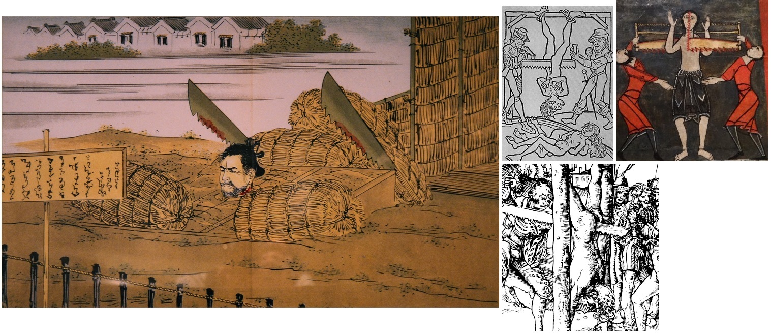 さらには罪人を逆さに固定し、股から逆に身体を挽くことでさらに苦痛を長引かせることもあった。