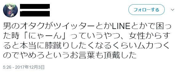 女、SNSで「にゃーん(nya-n)」と男が言うのはムカつく!「猫真似は、本当に気持ち悪い」
