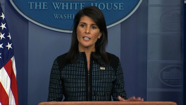 米国のヘイリー国連大使。米選手団の平昌五輪参加をめぐり、「未解決の問題がある」との見方を示したアメリカが参加しなかったら、ほかの国も参加しないだろうね。