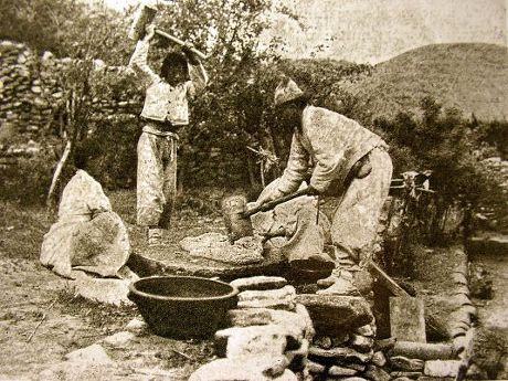 それまでは、黒米という古代米。日本だと赤米。それで、韓国にも小豆を煮て潰したあんこの原型はある。