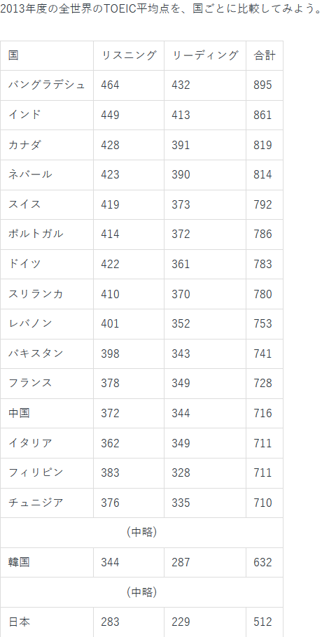 토익700보다 어려운 편TOEICとは、受験者人口は日本+韓国だけで全世界の約80パーセントを占めるガラパゴス試験だというのを知ってるか?w