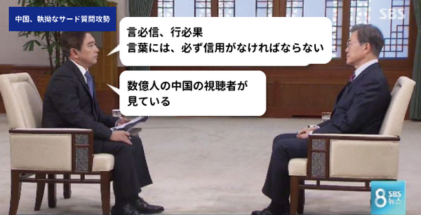 > 「韓半島戦争不可としっかり非核化、北朝鮮の核問題の平和的解決などについて、韓中両首脳が合意したことは非常に重要な成果」
