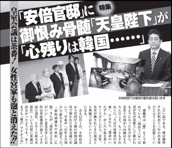 週刊新潮「天皇陛下が安倍首相に御恨み骨髄」