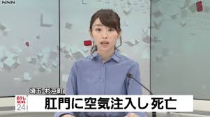 同署は司法解剖をして死因を解明中。空気注入によって腸壁に穴があき、急性腹膜炎を起こした場合、10人に1人が死亡するというデータもある。