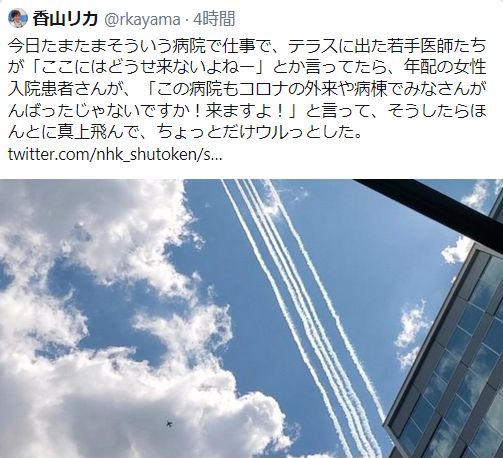 一瞬、ブルーインパルスの飛行機雲を天変地異の前触れって言ってるのかと思ったら香山リカで草