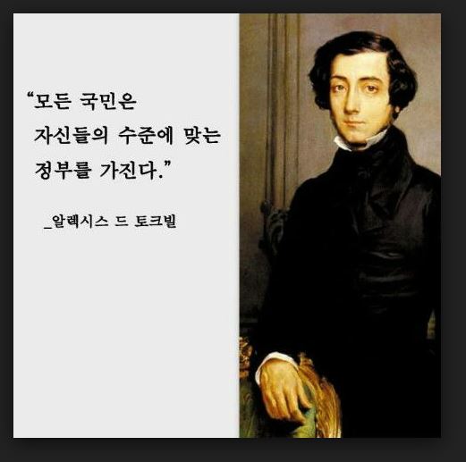 【모든 국민은 자신들의 수준에 맞는 정부를 가진다.】-알렉시스 드 토크빌(프랑스의 정치철학자,역사가)>>1