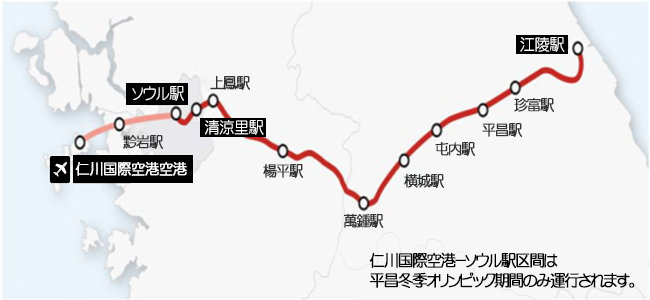 これに加え、オリンピック期間である2月中は京江線を拡大運行し、仁川国際空港(ターミナル2(T2))~江陵間も毎日16本(片道)運行され、外国人観光客は入国と同時にすぐにオリンピック観覧のための移動が可能になるので、さらに便利でスピーディーになることが期待されます。わははははーーーーーーーー