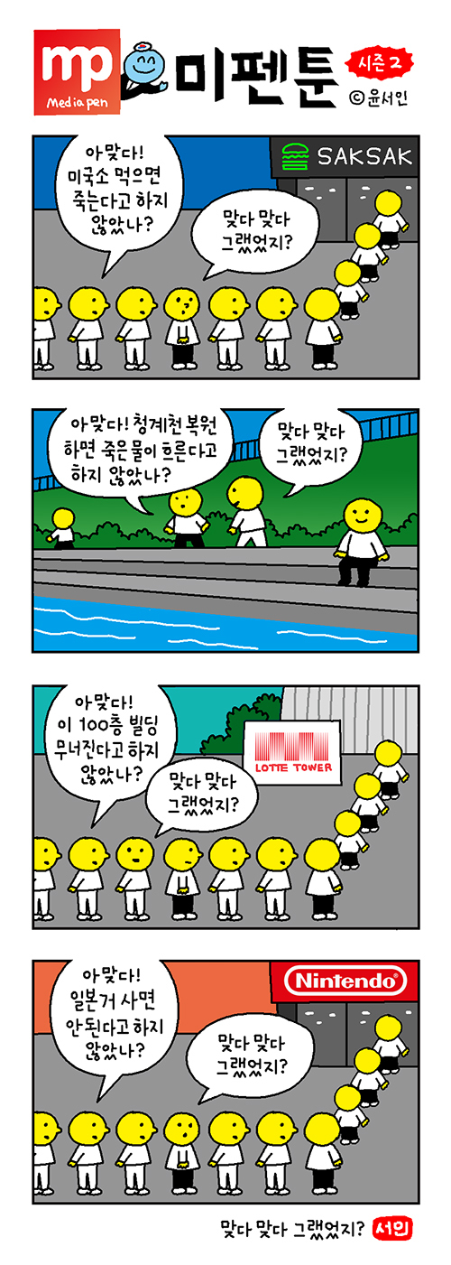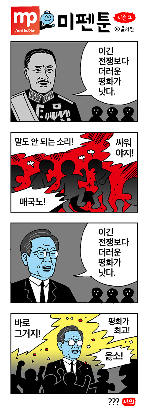 윤서인의 미펜툰の政治風刺漫画の、解説を人に聞くスレッド。