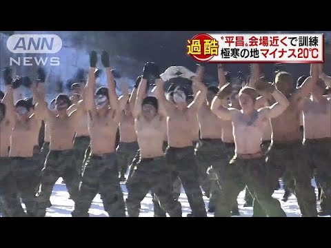 雪のなか、上半身裸になって体を動かす男たち。まもなくオリンピックが開かれる韓国の平昌で、韓国軍とアメリカ軍の海兵隊が合同雪上訓練を行っています。マイナス20度まで下がる厳しい環境の克服、戦闘技術の向上などを目的とした訓練は3週間にわたって行われ、約440人が参加します。この訓練は2013年から行われ、今回参加した韓国の兵士はオリンピックの警備も務めるということです。