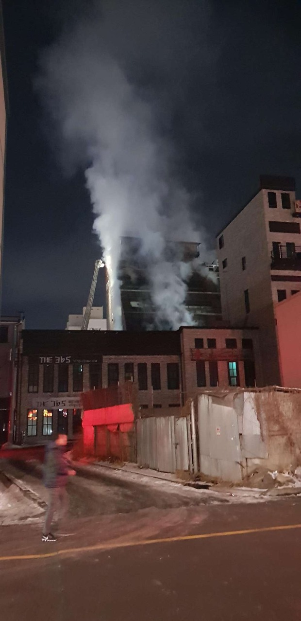 火災の目撃者は「駐車場で作業員が溶接などの作業をしていて発生した火が5分も経たないうちに建物の外壁にそって広がった」と伝えた。