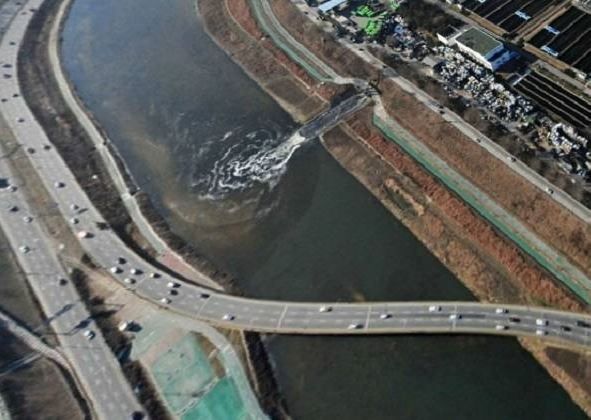 오염물을 버린 곳은 ( 한강 하류 [ 바다 지역 ] )