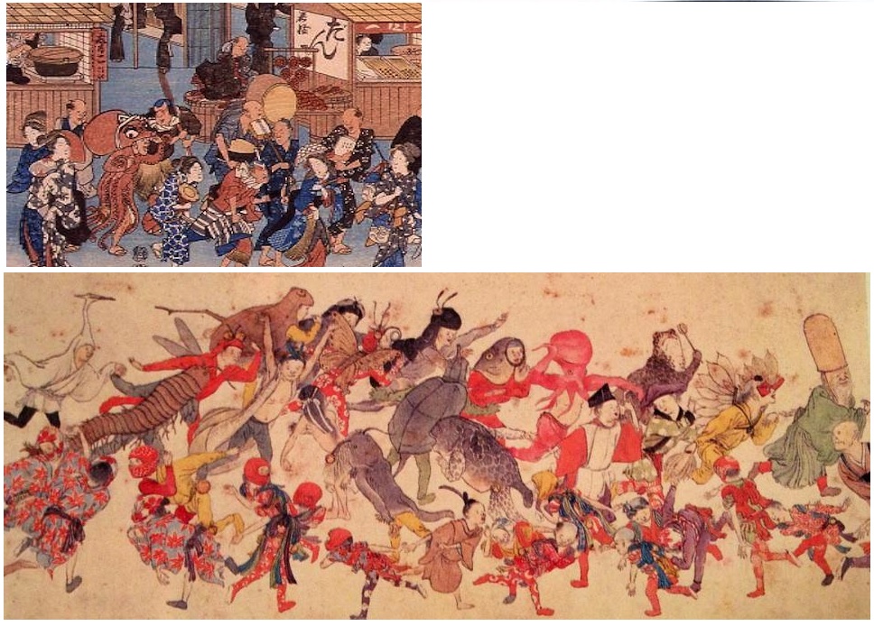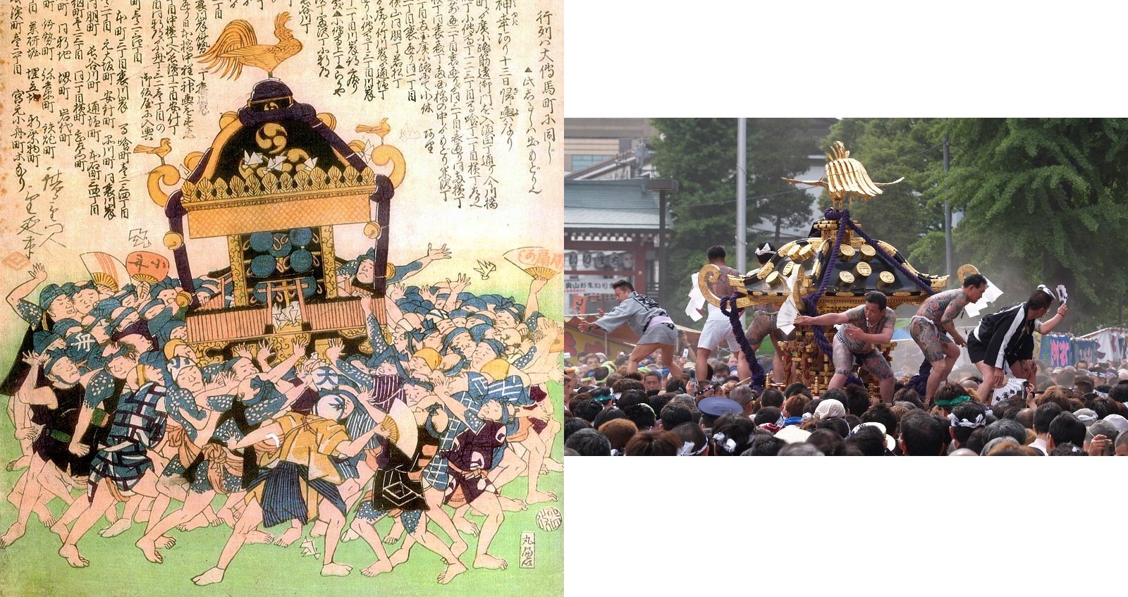 右は現在の三社祭・・なぜか浅草のヤクザが主役になっているが