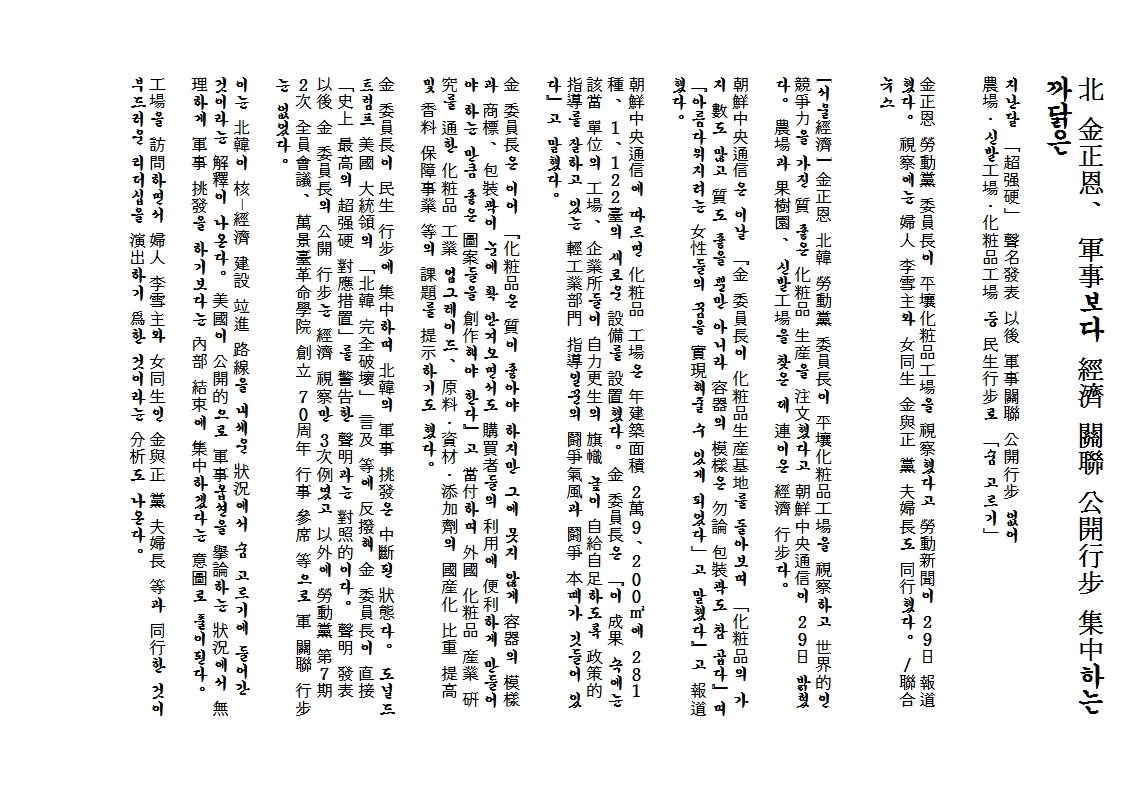 白代辯人は北韓軍部紀綱と關聯しては「北韓內部特異動向と關聯しては私たちが確認してみたことが板門店等で現在では特別一特異動向はない」と傳した。