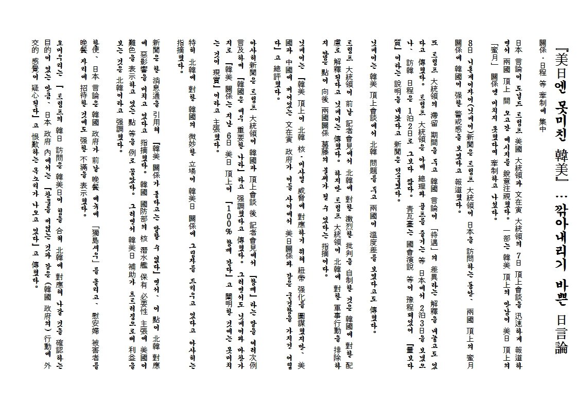 このように書いてもらえると、非常に日本人にとっては、読みやすいですし、韓国で発行されていた新聞と同じように、ハングルがわからない日本人でも、70%程度、翻訳無しでも意味がわかります。