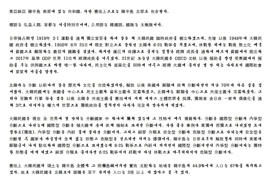 그런데 日本처럼 多樣하지는 않습니다.>>38 아무래도 國漢文混用文은 韓國에서 흔하지 않으니까... 適應하려면 初等學生때부터 漢字가 있어야겠지?