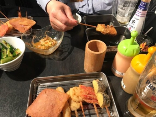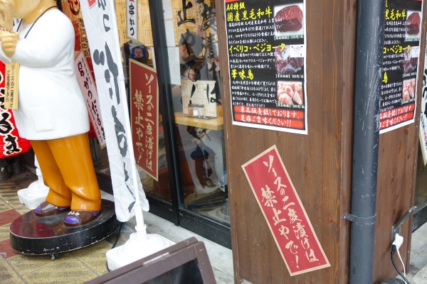 たまに外国人が串屋でソース容器に2回串を漬けて食べる間違いをすると酷い目にあうという。