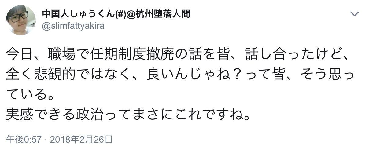 すでに中流と言われている層は、その掴んだ既得権と引き換えに、党に何も言う気は無い。階級はそれで固定されてしまって、もう滅びるまで成長はないと見てよい。実際中国がすごいからだろ。経済も科学技術もインフラも大躍進してる。