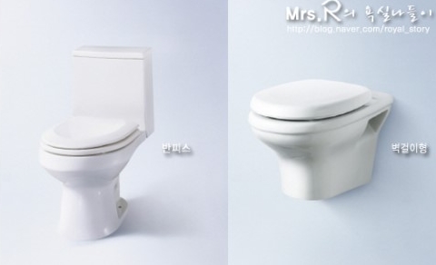 오른쪽은 공중에 떠 있다. ( 벽걸이 형 좌변기 )