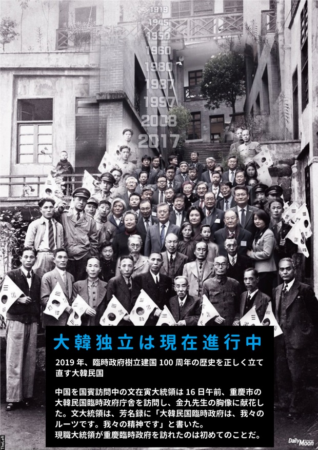 ドア大統領は昨年の光復節祝辞でも「2019年は、大韓民国の建国と臨時政府樹立100周年を迎えるし」と明らかにしたています。