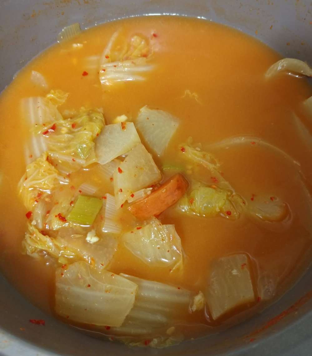よく分かったよ。有り難う。確かにキムチをただのお湯で味噌と一緒に溶いただけのように見える。