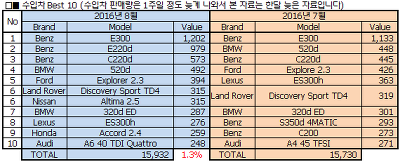 7월과 8월의 수입차 판매량 자료를 가져와봤어.