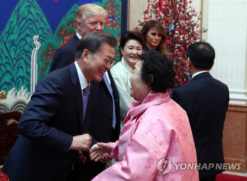 문 대통령은 지난해 11월 도널드 트럼프 미국 대통령이 방한했을 때 국빈 만찬에 이용수 할머니를 초청한 바 있다.>>1