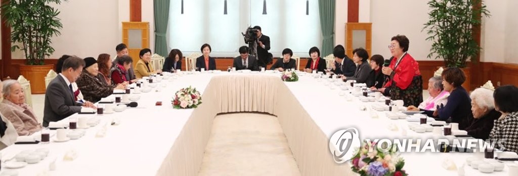 4日、文在寅大統領は青瓦台で昼食会に招いたナヌムの家に所属している慰安婦8人の前で頭を下げた。この昼食会には慰安婦以外に、ユン・ミヒャン挺身隊問題対策協議会共同代表、チ・ウンヒ正義記憶財団理事長、中神権ナヌムの家所長が参加し、政府はガンギョンファ外交・ジョンヒョンベク女性家族部長官、ナムインスン国会女性家族委員長などが同席した。