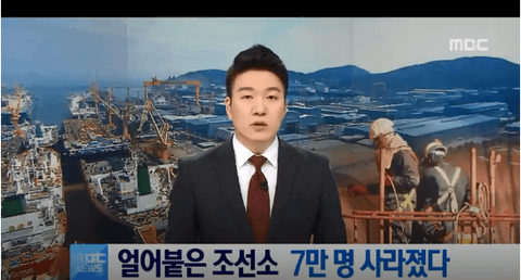 続く不況で最近の2年間、造船業から合計7万人の雇用が消えました。業界ではこの不況が今後2〜3年間は続くと見ています。今後2〜3年が造船業の再生の最大の節目になると見ています。政府は構造調整ファンドを作って来年初めから中小造船会社に1兆ウォンを支援することにしました。