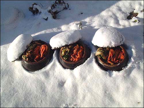 그 맛이 너무 궁금하지만 먹을 수 없는 것이 유감이다.>>24 이런 느낌. 냉장고가 없던 시절에는 이렇게 땅에 묻은 장독에 보관했다. ^^ 정감가는 풍경.. 일본인들은 더럽다고 생각할지 모르지만 땅에 묻기만 하는 것이기에 더럽지 않다.