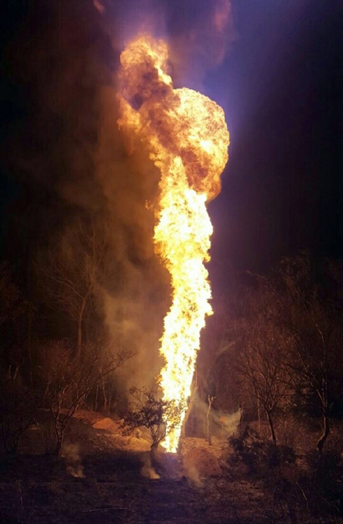 불기둥은 한때 15m 높이까지 치솟았으며, 송유관 안의 휘발유량이 줄면서 조금씩 낮아지고 있다.