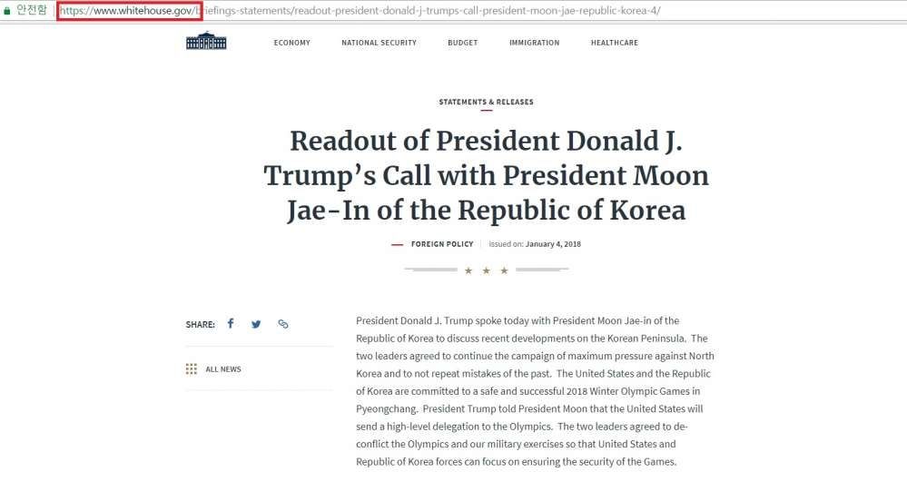 1/4の電話会談以降、ホワイトハウスは一度も言及していない