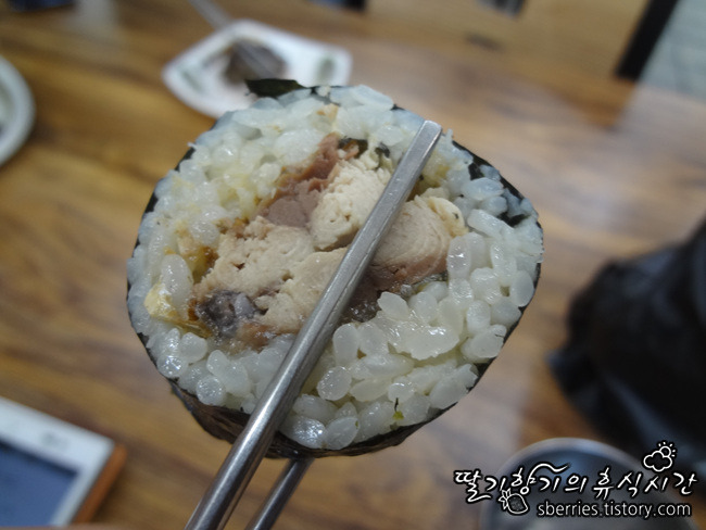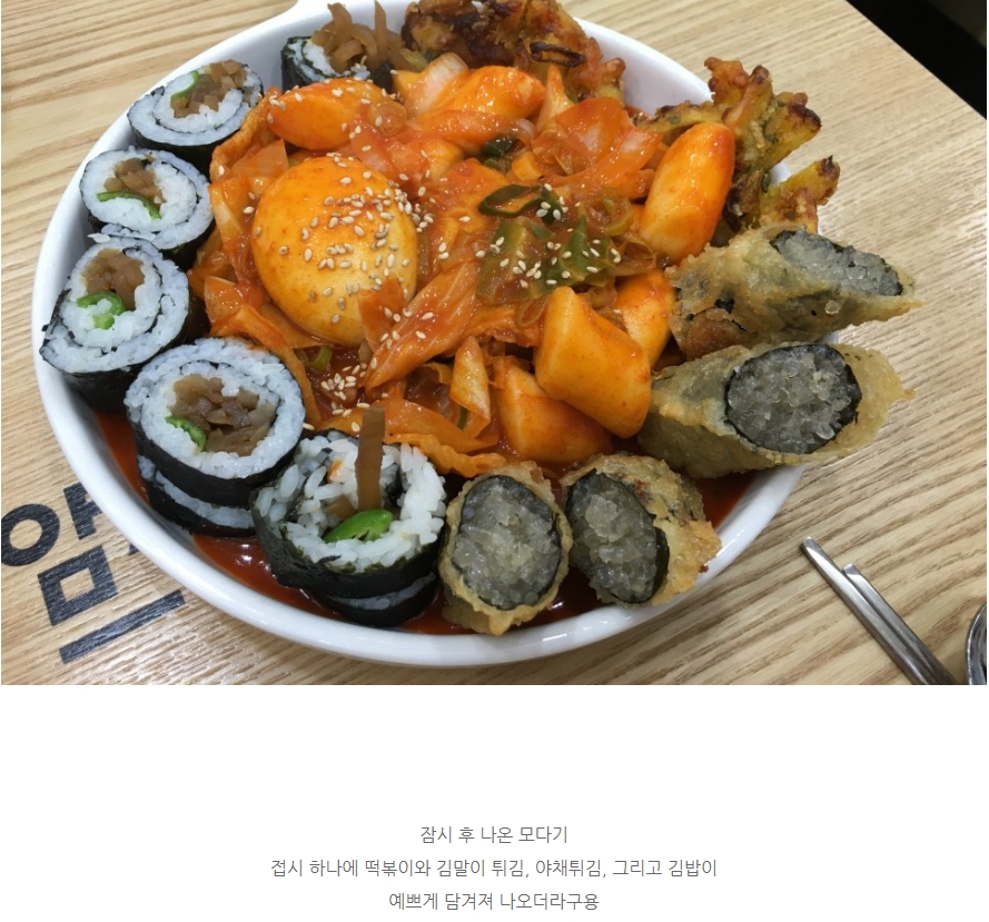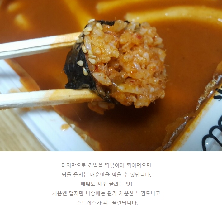 떡볶이 그릇 위에 김밥이 올려져 있지 않습니까?