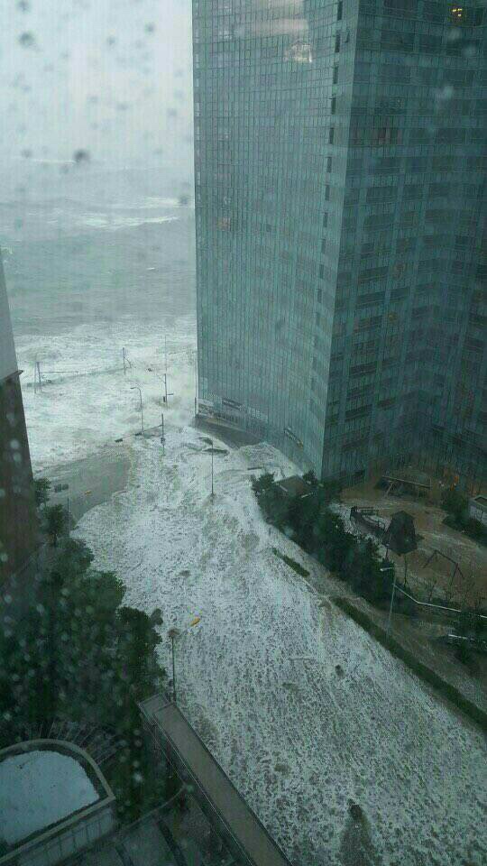 이번 태풍이 몰아닥쳤을때 부산 마린시티에 엄청난 파도가 몰아닥친 이유 www