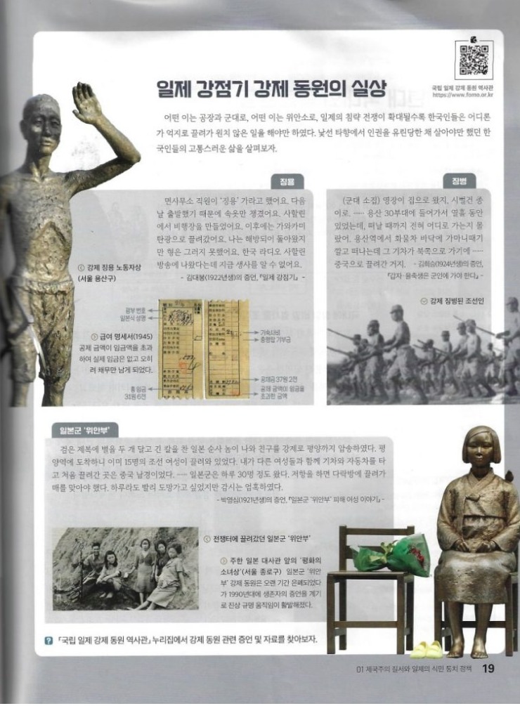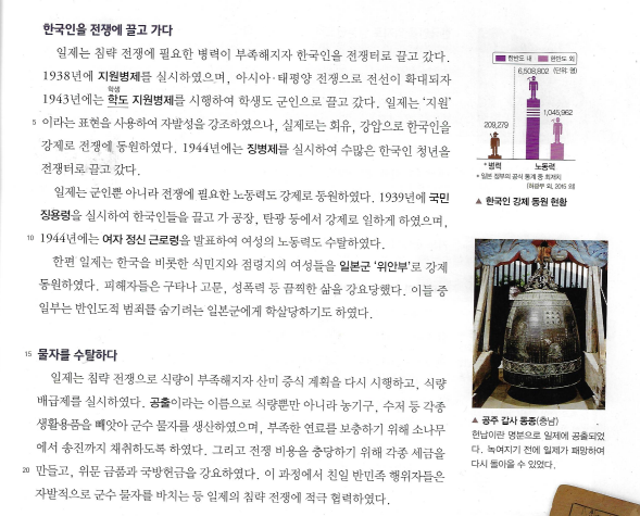 교과서에 일본은 나쁜 나라다, 일본인은 악마다, 이런식으로 적혀 있지는 않다. 태평양전쟁에 대해서는 매우 짧게 언급 되어있고 일제강점기에 대해서는 상당히 많이 적혀있기는 하지만 비교적 건조하게 서술되어 있다. (일제강점기에 대해 일본인들은 그래도 한국이 발전한 시기 아닌가, 하는 사람도 있겠지만 현대의 미국이 일본의 주권을 빼앗은 다음에 보호하고, 발전시켜준다고 하면 일본인들이 동의할까? 지도에서 '일본'이라는 글자가 사라지고 'America' 라고 적혀있다고 생각해봐라.)
