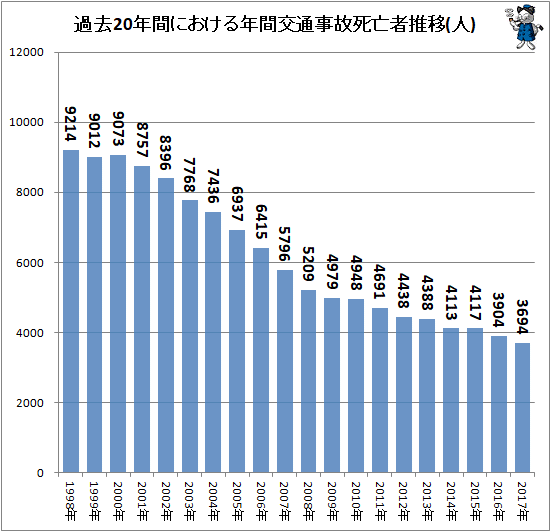 ハイフンポストから、2014年頃までの交通事故死者数。
