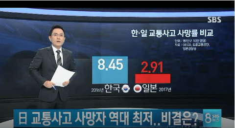 "왜 일본의 교통 사고 사망률은 한국의 3 분의 1인가?"