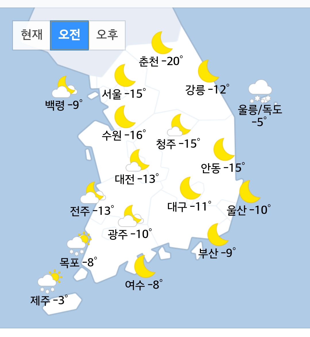 오늘(12일) 새벽 서울의 체감온도는 -20.4도를 기록했습니다.