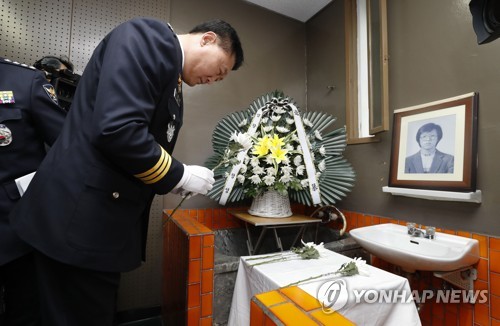 1987年1月ソウル大生だった朴烈士が警察の調査を受けて最中に拷問の末亡くなった。その現場であるソウル龍山区にある旧治安本部509号調査室で、イチョルソン警察庁長官など警察指揮部がパク烈士の遺影の前に頭を下げ、献花と黙とうで故人に謝罪し、過去の犯した罪の許しを乞うた。