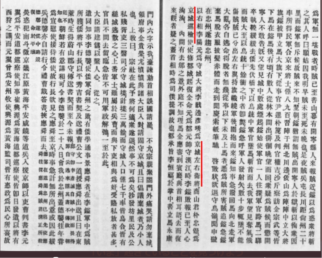 豊臣秀吉による文禄の役の際の首都防衛隊として、「京城左右衛将」や「京城巡検使」の表記が出てる