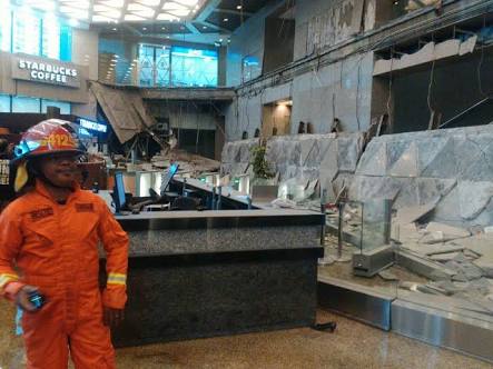 2階バルコニーが崩壊したジャカルタ証券取引所 双竜建設の施工か?