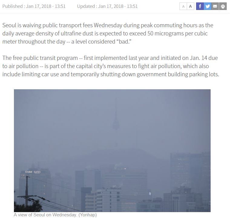 韓国気象庁が霧がかかるので健康管理に注意って言ってるけど