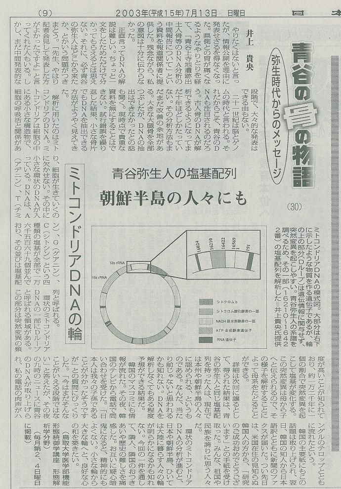 연구팀은 야요이 시대 유적인 돗토리현 아오야가미 절터에서 출토된 야요이인 유골의 미토콘드리아 디엔에이 염기배열을 분석해 이런 결론을 얻었다. 연구팀은 야요이인 유골 29점 가운데 7점으로부터 디엔에이를 추출한 뒤 이 가운데 4점에서 미토콘드리아 디엔에이 염기배열을 확인하는 과정을 거쳐 이들이 현대 한국인 및 혼슈의 일본인과 동일한 집단에 속한다는 것을 밝혀냈다. 미토콘드리아 디엔에이는 모계로 이어지는데 이번에 분석된 4점은 모두 모계를 달리하고 있는 것으로 나타나, 아오야가미 절터 유적에는 당시 적어도 서로 다른 4개의 모계가 존재했을 것으로 추정되고 있다.