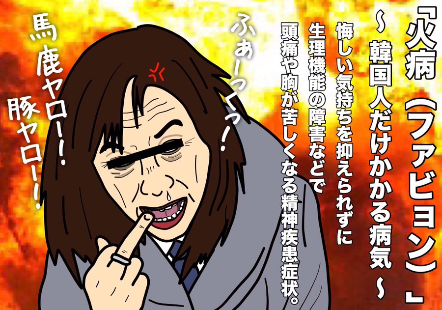 ありがとごじゃいます!これ「火病」というのが韓国人固有の精神疾患の名前だと知らない上に