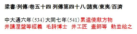 534年と541年に百済は中国に何度も何度も何度も何度も朝貢し、仏教の経典の下賜と、儒教の専門家や職人、画家などの技術者を派遣してくれるようにお願いしまくって、中国の皇帝から下賜されます。( ´H`)y-~~
