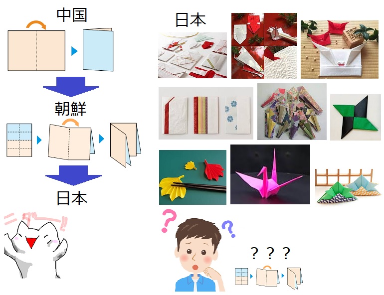 紙を折ることならどこにでもあるだろ、そりゃ。問題はそこではない。朝鮮人は投影であらゆる紙を折ることの起源を日本人が主張してると思ってるから対話が成り立たんのだよ