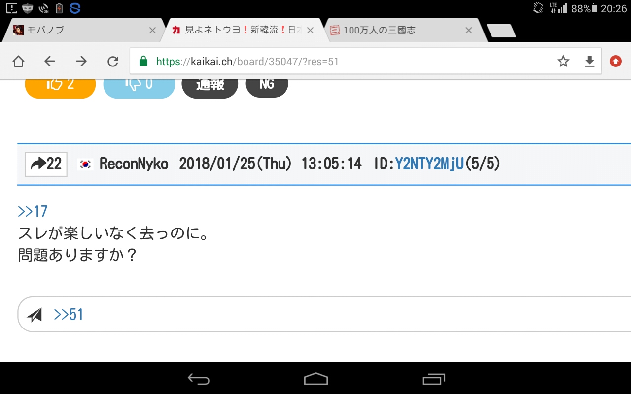 間違えました。原文表示朝鮮人は恥を感じないから、羨ましいよw
