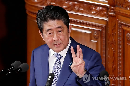 (도쿄=연합뉴스) 김병규 특파원 = 아베 신조(安倍晋三) 일본 총리는 22일 국회 새해 시정연설에서 각당에 대해 개헌안을 내라고 요구하며 개헌 드라이브를 강하게 걸었다.