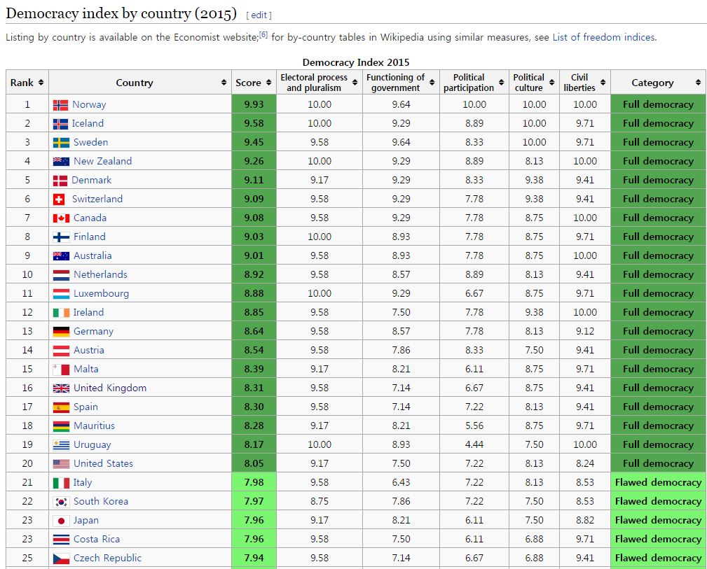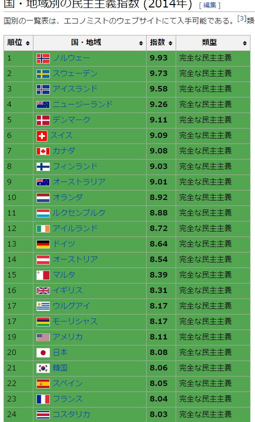 일본에 정보가 들어가지 않는게 아니라, 여러분들이 한국의 그러한 정보만을 수집하기 때문입니다일본인들의 선민의식에 질린다ww 만약 이 말을 하고 있는 사람들이 북유럽 선진국민이라면, 한국인은 학생의 자세로서 배울것이다. 그러나 세계의 시선을 그렇게 중시하고 눈치보는 일본인이 한국보다 더 떨어지는 민주주의지수(https://en.wikipedia.org/wiki/Democracy_Index)(일본 위키피디아엔 한국이 일본을 역전하자 2015년 통계는 올려 놓지도 않았다ww 2014년도 한국과 일본의 차이는 1계단)와 언론자유지수(https://en.wikipedia.org/wiki/Press_Freedom_Index)를 가지고 한국에 훈계하는 꼴을 보면, 실소를 금할수가 없다w 위의 세계의 기준에서 1의 오점이라도 발견되면 민주주의가 아니라는 소리를 하시는것 같은데(번역이 매끄럽지 않습니다) 일단 일본부터 쇄신하는것이 어떤지 진지하게 조언드립니다.