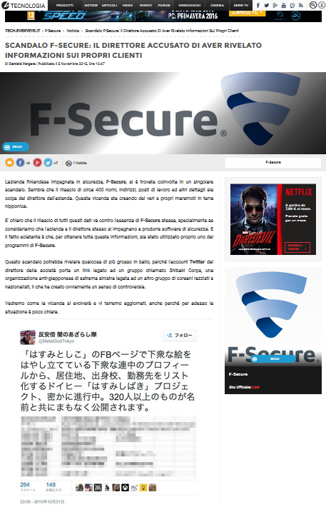 Fセキュアに勤めていた「ぱよちん」こと在日バカ親父は会社の権力使って嫌韓を恫喝して