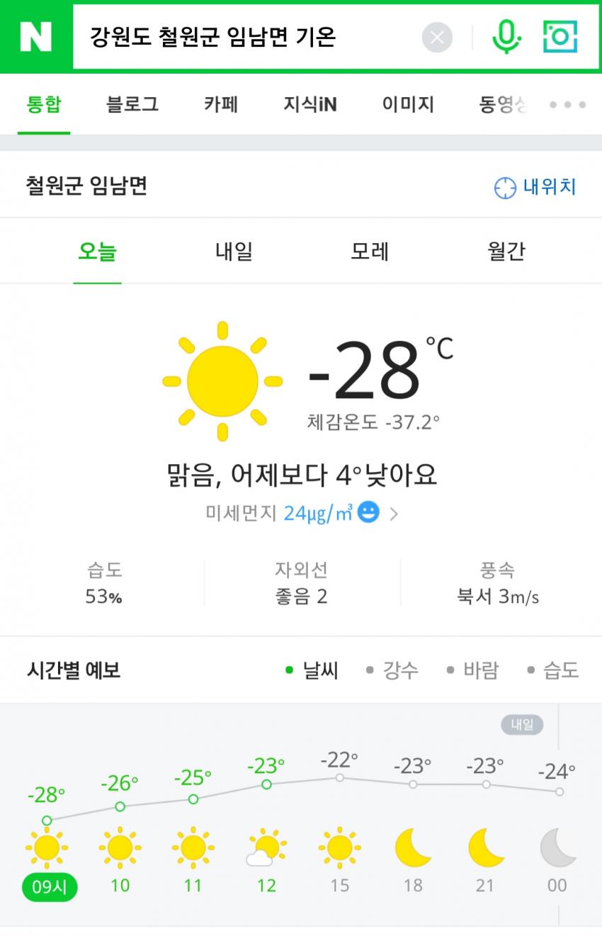1名無し2018/01/24(Wed) 13:17:50ID:A2NDUwNTI(1/1)NG報告한국 기상청 관측 사상 가장 낮은 기온 (영하 30.5도)을 기록한 적도 있는 철원 어느 지역의 오늘 아침 기온입니다.철원의 일부 지역은 10월에도 영하 7도로 추락하는 기염을 토하기도 합니다.>>2>>3>>6>>8>>9>>20>>28>>29>>340
